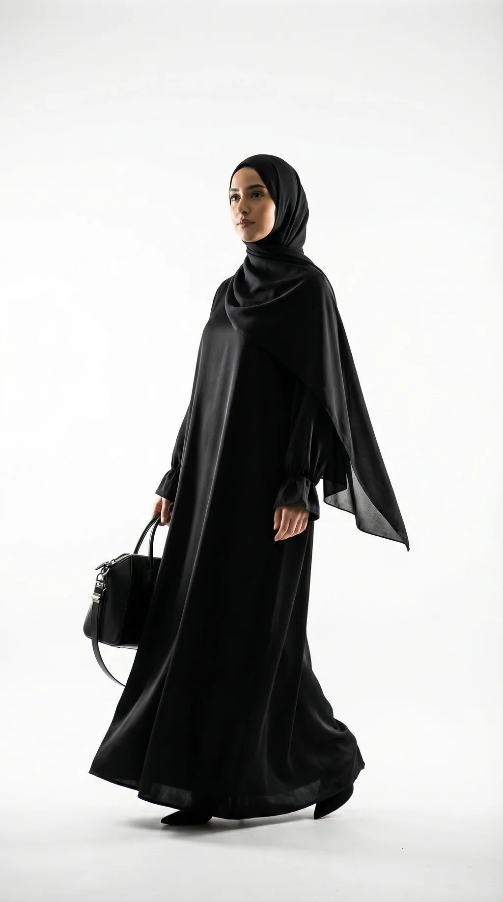 Confectionnée en matière Jazz, elle offre un tombé naturel et un rendu légèrement texturé. À associer avec un hijab noir pour un total look, ou avec un hijab beige, taupe ou écru pour un contraste chic.